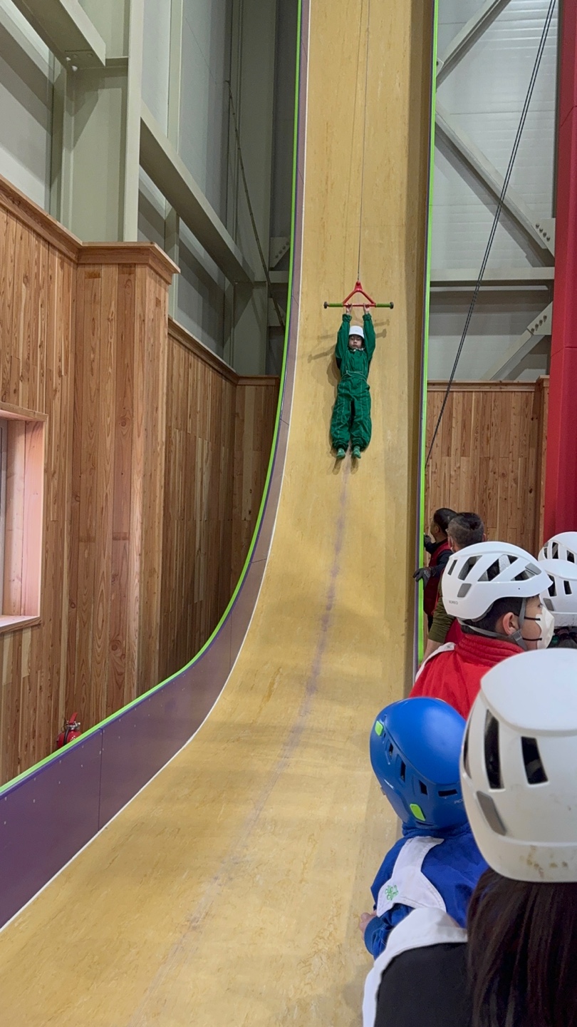 마지막이라서 내려가서 촬영을 했는데 특수한 옷?을 입고 철봉 같은 걸 잡고 올라가다가 버틸 때까지 버티고 떨어지면 미끄럼틀처럼 쭈욱 내려온다. 다른 아이 부모님도 한번 체험을 하시던데 너무 재밌다고 두 번 타심.