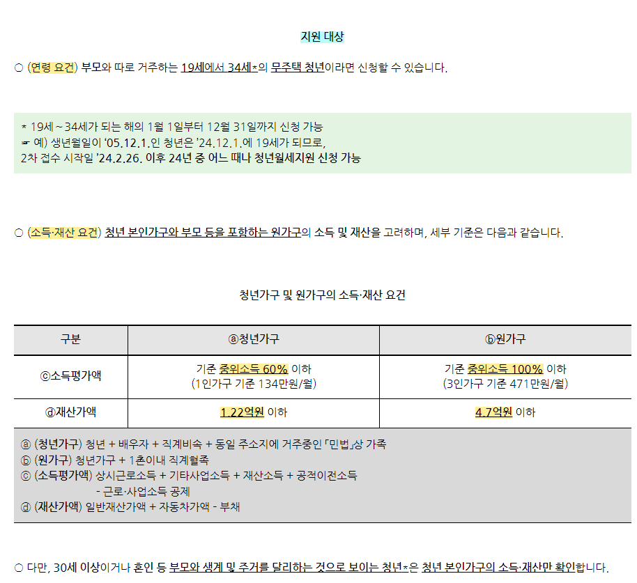 (제외대상 주택 소유자 (분양권,입주권포함)2촌 이내 주택 임차자, 공공주택특별법에 따른 공공임대주택 거주자, 1실에 다수가 거주하는 형태의 전차인, 지자체 시행 기존 월세 지원 수혜자)